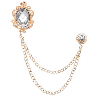 Unique Bargains Hanging Fashion Crystal Lapel Suit Round Gem Tassel Chain Brooch Pins 2 Pcs - 1 of 4