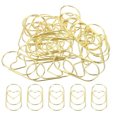 Unique Bargains Heart-Shaped Metal Prevent Tearing Pages Home Office Paper Clip 50 Pcs 2 Inch Gold Tone