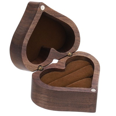 Unique Bargains Heart Shaped Wooden Engagement Ring Box
