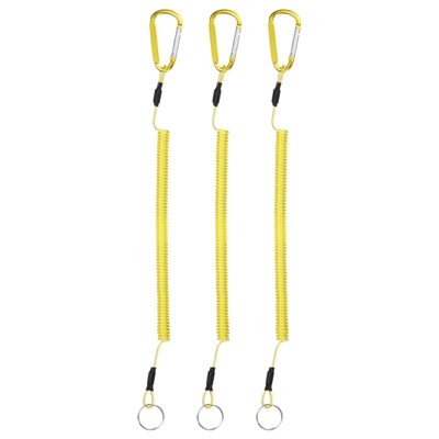 Unique Bargains Heavy Duty Retractable Coiled Steel Wire Carabiner 3 Pcs