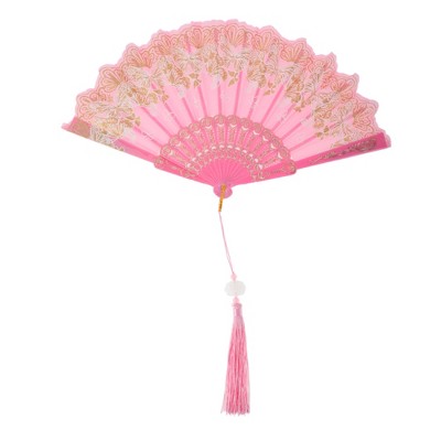 Unique Bargains Halloween Christmas Hot Stamped Floral with Tassel Folding Fan 1 Pc