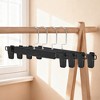 Unique Bargains Imitation Wood Grain Flat Hook Pants Hanger with Clips Black 4 Pcs