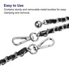 The chain strap is designed to match your bag perfectly. It is made of PU and iron material that ensures strength and corrosion resistance. The surface plating prevents oxidation and fading. The strap includes two removable metal swivel clasps and a sturdy metal ball buckle for easy attachment and length adjustment. This chain strap serves as a versatile accessory for tote bags, handbags, purses, and more. It allows for customization of new bags with different styles. Caution is advised as the thin chain connections may catch hair, and it is important to verify the chain length before ordering.