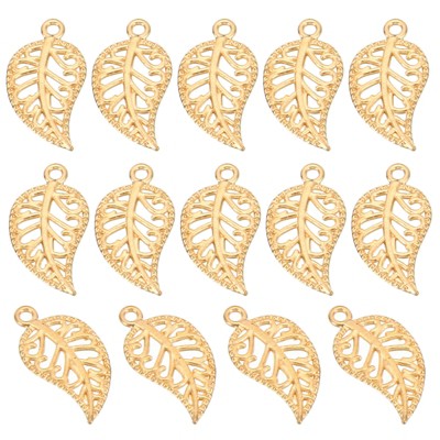 Uniquely and stylishly designed, each pendant features a beautifully detailed leaf design, adding a touch of natural elegance to your creations. Durable materials ensure the pendants retain their luster and resist tarnishing, allowing you to admire your jewelry for years to come. Leaves symbolize growth and a connection to nature, adding depth and meaning to your jewelry creations. These charming leaf pendants make thoughtful gifts or personal accessories that convey a special message. They can be added to necklaces, bracelets, earrings, keychains, or even as decorative elements in your home. Directions: Using basic jewelry-making tools, these pieces can be easily attached to chains, cords, or jump rings, allowing you to create personalized, unique pieces. Note: Ensure the pendant is securely in place before wearing or using.