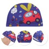 Unique Bargains Kid's Polyester Car Pattern Swim Cap Blue Red 1 Pc
