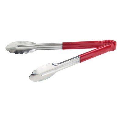 Unique Bargains Kitchen Tongs for Cooking Stainless Steel Tongs Silicone Round Head Salad Burgundy 12"