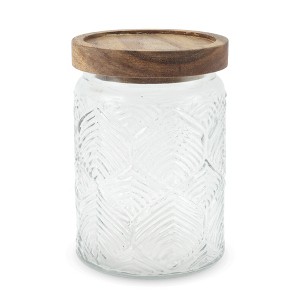Unique Bargains Leaf Pattern Decorative Glass Jar with Lid 1 Pc