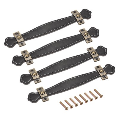 Unique Bargains Leather Dresser Door Drawer Knobs and Pulls with Screws 4 Pcs