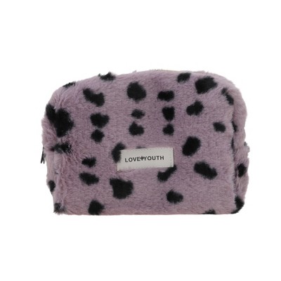 Unique Bargains Leopard Plush Makeup Bag Brown Color 1 Pc