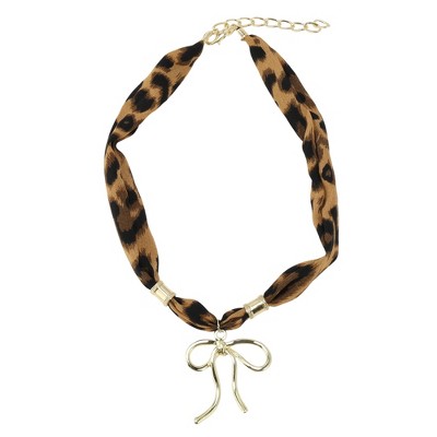 Unique Bargains Leopard Scarf Necklace with Charm Adjustable Tie Statement Choker for Women Brown 1 Pc