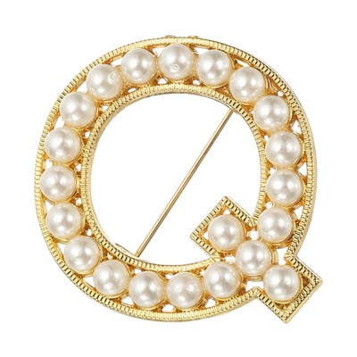 Unique Bargains Letter Brooch Pins, Pearl Letter Lapel Badges Pin for Women Men Girl Wife Clothes Dress Coat Hat, Gold Tone, Letter Q