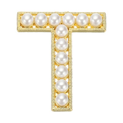 Unique Bargains Letter Brooch Pins, Pearl Letter Lapel Badges Pin for Women Men Girl Wife Clothes Dress Coat Hat, Gold Tone, Letter T