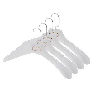 - Set of 4 hangers for coats, shirts, dresses, and pants, which makes a stylish and functional addition to your closet
