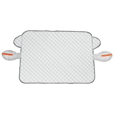 The winshield does not stay put on the back window of the car during Winter. Once the cover is placed on the back window and the flaps are tucked inside the car (back seat) the cover flips over with the wind.