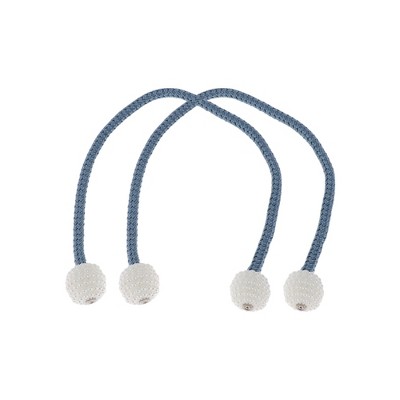 Unique Bargains Magnetic Buckle Small Faux Pearl Curtain Tie Polyester Rare Earth Magnet 2 Pcs Gray Blue