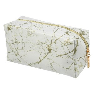 Unique Bargains Makeup Bag Cosmetic Travel Bag Make Up Brush Organizer Bag Marble Makeup Storage Toiletry Bag for Women White Gold Tone 7"x3"x4" 1 Pcs