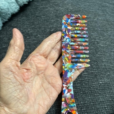 Item Function: 1. Hair comb for daily hair care. 2. This brush is suitable for all hair types. It effectively removes tangles and leaves the hair smooth. Recommend gently scratch the comb over the scalp and avoiding excessive forces if you find the bristles a little hard. 3. This will be a good companion for your hair dryer because it can easily dry your hair from a wet state and keep it soft and smooth. 4. Whether you have fine, thick, curly, or straight hair, this versatile brush is suitable for all textures. Specifications: Product Name: Hair Comb, Material: Acetate Sheet, Size: 19x4.5cm / 7.48"x1.77"(L*W), Package List: 1 Pc Hair Comb.