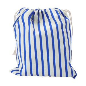 Unique Bargains Stripe Drawstring Makeup Bag Blue 1 Pc