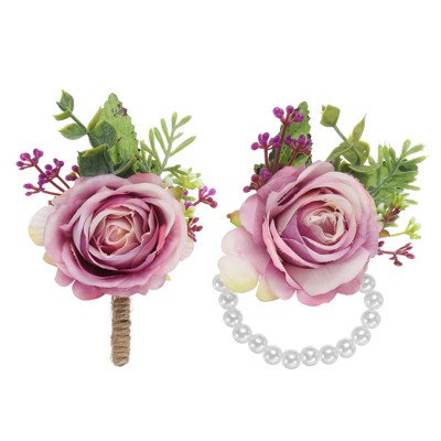 Unique Bargains Calla Lily Boutonnieres Silk Ribbon Artificial Flowers with Pins 2 Pcs