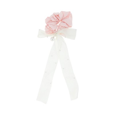 UniqueBargains Mesh Ribbon Pearl Scrunchie 1 Pc