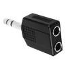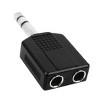 - Converts a 6.35mm male connector to dual 6.35mm mono jack female connectors