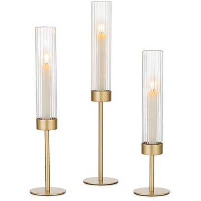 These tapered candle holders are made of solid metal. The surface design is beautiful and elegant, giving them an elegant look. The candle holders are rust-proof, anti-corrosion, and equipped with a weighted base, strong and durable, and not easy to tip over. Each tapered candle holder has a non-slip foam bottom that won't scratch your tabletop. They can not only be used as candle holders but also can be used as interior decoration artwork. The candlestick with modern and clean lines will add elegance to your home. The visual effects of candle holders of different heights give you a sense of wonder and add a more romantic atmosphere to your dates, parties, holiday celebrations, and anniversaries. Each candlestick holder consists of three parts and installs without tools. The candle holder is designed with threads; screw the rod into the base and the lower end of the candle holder. Wipe the candle holder with a soft cloth and keep it dry. The candle holders are suitable for the living room, study room, bar, bedroom, bathroom, dining room, and other occasions. And it is a decoration to create the atmosphere for birthday parties, candlelit tables, weddings, parties, celebrations, anniversaries, and more. It is also a good gift for your friends, family.