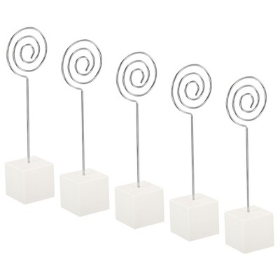 The square resin base with a matte finish provides stability, while the wire clip securely holds your cards, photos, or notes. Its compact size makes it easy to store and carry. Easily slip it into your pocket or purse for easy access on the go. This stylish and elegant placeholder card adds a touch of sophistication. It's perfect for storing place cards, photos, memos, notes, and other important reminders. It's the perfect accessory for weddings, parties, conferences, or any other event where you need to display important information.