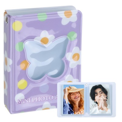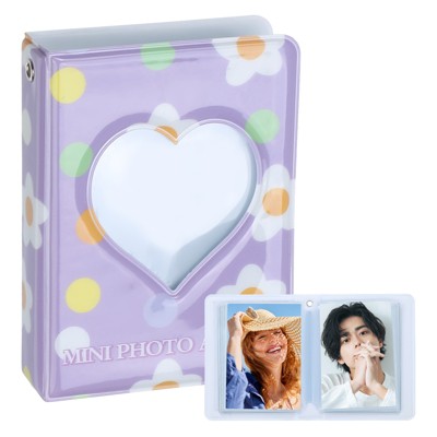 Unique Bargains Mini Love Heart Material Photocard Binder Album with 32 Pockets 4.3"x3.3" Purple