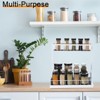 The 2 tier pull-out under-sink storage organizer is easy to assemble without the tools required to be completely installed in a few minutes. The organizer has a hollow design for ventilation and dryness. Elevated Guardrails prevent spice jars or laundry supplies from falling. This pull-out under-sink organizer and storage can help you increase storage space on narrow under sinks, bathrooms, and kitchens. It can be used as bathroom toiletries storage, kitchen spice rack, laundry room storage, etc. It not only maximizes the utilization of storage space but also makes the bottles and jars more neat.