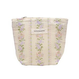 Unique Bargains Multifunctional Rose Handheld Makeup Bag Beige Purple 1 Pc