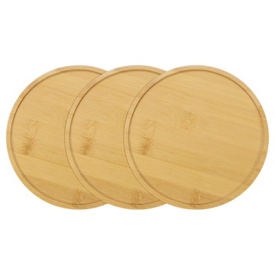 - Wooden bamboo tray serves as flower pot holder and storage