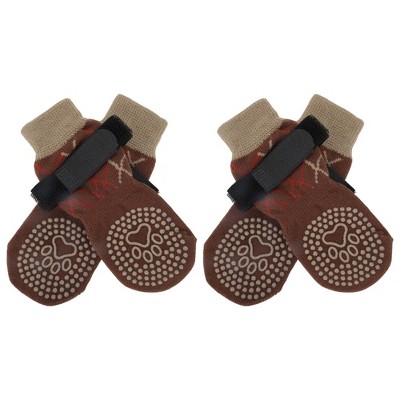 Unique Bargains Non-Slip Dog Socks with Reflective Adjustable Tapes Brown 4 Pcs - 1 of 4