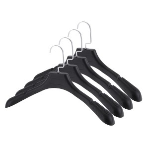 - Set of 4 hangers for coats, shirts, dresses, and pants, which makes a stylish and functional addition to your closet