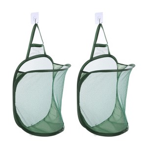 Unique Bargains Nylon Mesh Breathable Hanging Laundry Hamper with Hooks 2 Pcs