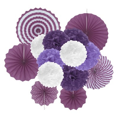 - The package includes paper fan decorations with various designs
