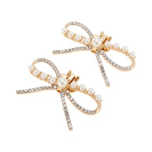Unique Bargains Pearl Rhinestone Bow with Detachable Clip Shoe Accessories 2 Pcs