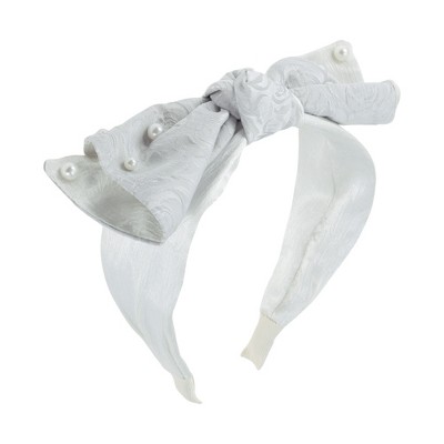 Unique Bargains Exquisite Pearl Rose Jacquard Bow Headband 1 Pc