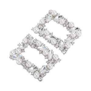 Unique Bargains Pearl Square Clasp Pin Back Style Shoe Accessories 2 Pcs