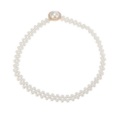 Unique Bargains Pearls Bow Adjustable Waist Belt Beige 1 Pc