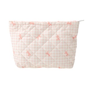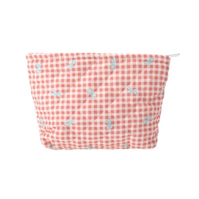 Unique Bargains Fashion Plaid Bow Makeup Bag 1 Pc