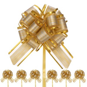 Unique Bargains Plastic Gold Edge Glossy Durable Ribbon Pull Bows 20 Count