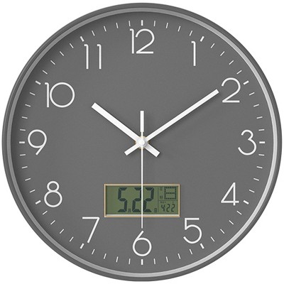 The 12" plastic wall clock with date and temperature is a sleek and modern addition to any room or space. Made of good plastic with a glass-like finish, it prevents dust from entering. Ideal for adding a touch of style and sophistication to any room or space, this wall clock is perfect for living rooms, bedrooms, or any other space where you want to make a statement. With its sleek and modern design, this clock is sure to become a focal point in your home decor.
