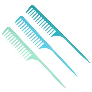 Unique Bargains Plastic Wide Tooth Rat Tail Comb Green Blue 3 Pcs