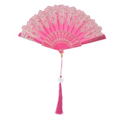 Unique Bargains Halloween Christmas Portable DIY 7-Inch Blank Folding Fan 1 Pc Rose Red