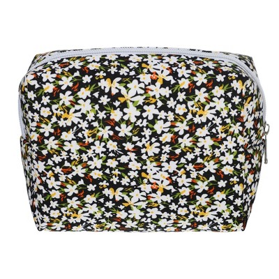 Unique Bargains Portable Flower Cosmetic Bag Black 1 Pc