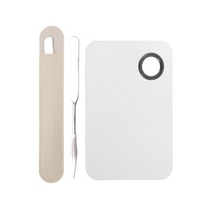 The makeup spatula adopts ergonomic design, smooth edges and comfortable grip; it comes with a storage bag and lightweight design, which is convenient for storage and carrying; it is not easy to deform or break, suitable for long-term use, and has a simple design; the hole design of the makeup tray is easy to use, just hold it with your fingers when using it, and it is not easy to fall off (only for use with makeup tray).