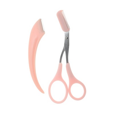 Unique Bargains Portable Multifunctional Eyebrow Scissor Kit Pink 1 Set