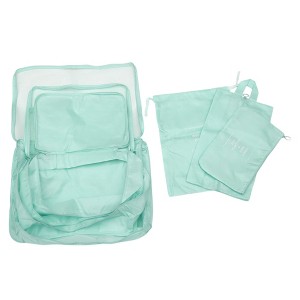 These packing cube are the good solution to maximizing luggage space while keeping your clothes and accessories neatly packed. The cube is made with the modern traveler in mind. They are ultra-lightweight, water-resistant, tear-resistant, and designed to save space. The durable material ensures that your belongings are protected while traveling, and the sleek design adds a touch of sophistication to your packing routine. The set includes different sizes of packing cube, ideal for accommodating a variety of items such as clothes, toiletries, and electronics. This set is suitable for any type of trip, whether it's a weekend getaway or a long vacation. Clothing Bag Large: 16.54 inches L x 4.72 inches W x 12.6 inches H; Clothing Bag Medium: 13.39 inches L x 4.72 inches W x 11.02 inches H; Clothing Bag Small: 12.6 inches L x 4.72 inches W x 9.06 inches H; Underwear Bag: 11.02 inches L x 4.72 inches W x 7.87 inches H; Flat Bag: 10.63 inches L x 6.3 inches W; Boots Bag: 8.27 inches L x 3.94 inches W x 13.39 inches H; Large Drawstring Bag: 10.63 inches L x 14.17 inches W.