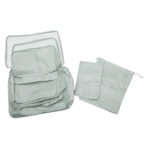 These packing cube are the good solution to maximizing luggage space while keeping your clothes and accessories neatly packed. The cube is made with the modern traveler in mind. They are ultra-lightweight, water-resistant, tear-resistant, and designed to save space. The durable material ensures that your belongings are protected while traveling, and the sleek design adds a touch of sophistication to your packing routine. The set includes different sizes of packing cube, ideal for accommodating a variety of items such as clothes, toiletries, and electronics. This set is suitable for any type of trip, whether it's a weekend getaway or a long vacation. Clothing Bag Large: 16.54 inches L x 4.72 inches W x 12.6 inches H; Clothing Bag Medium: 13.39 inches L x 4.72 inches W x 11.02 inches H; Clothing Bag Small: 12.6 inches L x 4.72 inches W x 9.06 inches H; Underwear Bag: 11.02 inches L x 4.72 inches W x 7.87 inches H; Flat Bag: 10.63 inches L x 6.3 inches W; Large Drawstring Bag: 10.63 inches L x 14.17 inches W.