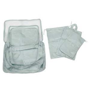 These packing cube are the good solution to maximizing luggage space while keeping your clothes and accessories neatly packed. The cube is made with the modern traveler in mind. They are ultra-lightweight, water-resistant, tear-resistant, and designed to save space. The durable material ensures that your belongings are protected while traveling, and the sleek design adds a touch of sophistication to your packing routine. The set includes different sizes of packing cube, ideal for accommodating a variety of items such as clothes, toiletries, and electronics. This set is suitable for any type of trip, whether it's a weekend getaway or a long vacation. Clothing Bag Large: 16.54 inches L x 4.72 inches W x 12.6 inches H; Clothing Bag Medium: 13.39 inches L x 4.72 inches W x 11.02 inches H; Clothing Bag Small: 12.6 inches L x 4.72 inches W x 9.06 inches H; Underwear Bag: 11.02 inches L x 4.72 inches W x 7.87 inches H; Flat Bag: 10.63 inches L x 6.3 inches W; Boots Bag: 8.27 inches L x 3.94 inches W x 13.39 inches H; Large Drawstring Bag: 10.63 inches L x 14.17 inches W.